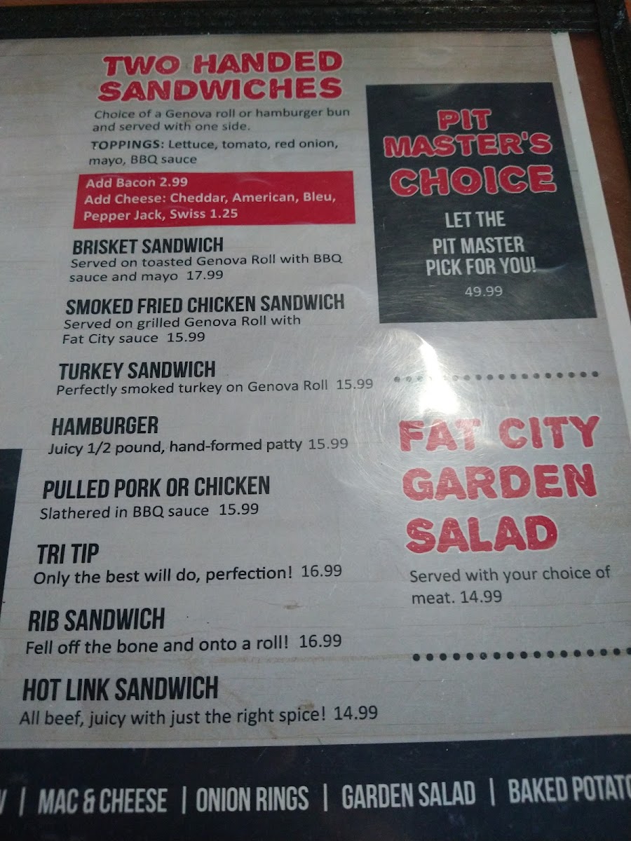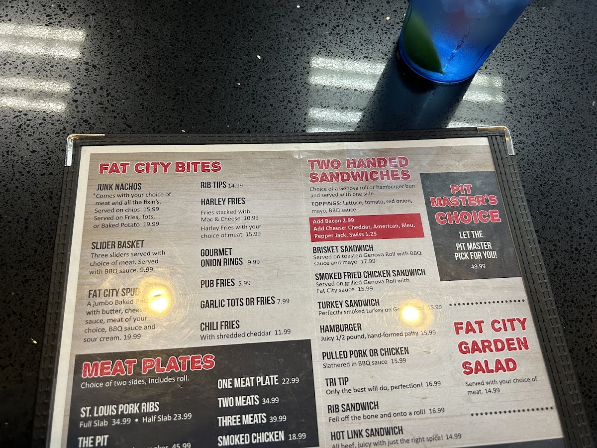 The moment you step into Fat City, you're enveloped in a warm and inviting atmosphere, perfect for a family outing or a casual meal with friends. The rustic decor, combined with the tantalizing aroma of smoked meats wafting through the air, sets the stage for a delicious experience. With both indoor seating and a back outdoor patio, you can choose your dining style while enjoying the vibrant energy of the place.